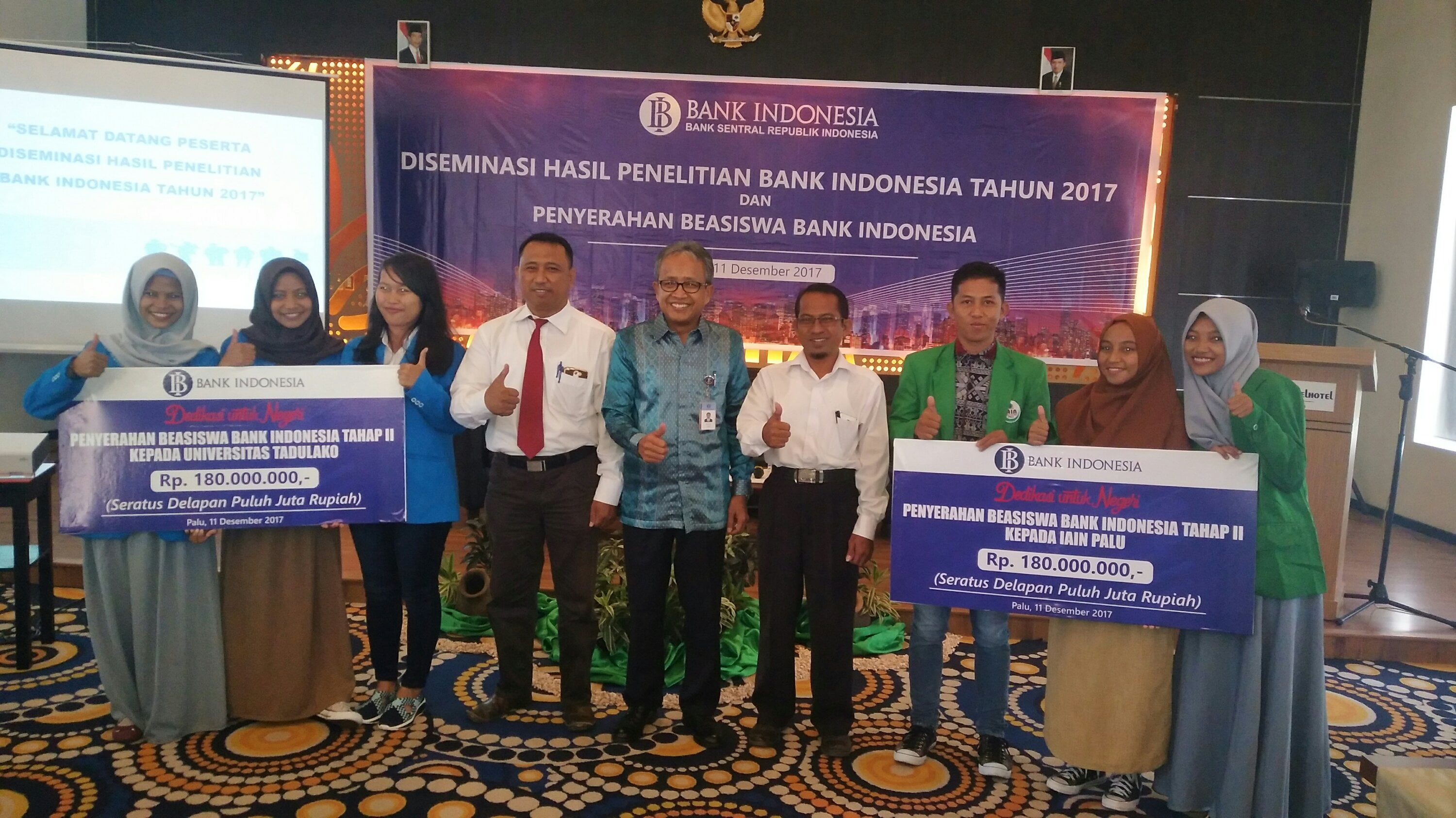Palu,Portalsulawesi. com – Salah satu upaya dalam meningkatkan sumber daya manusia,  Pihak Bank Indonesia Perwakilan Sulawesi Tengah,  kembali memberikan dukungan dana berupa beasiswa kepada sejunlah mahasiswa yang masing-masing berasal dari dua perguruan tinggi yang ada di Palu yaitu Perguruan Tinggi Negeri Universitas Tadulako dan Institut Agama Islam Negeri (IAIN) Palu.