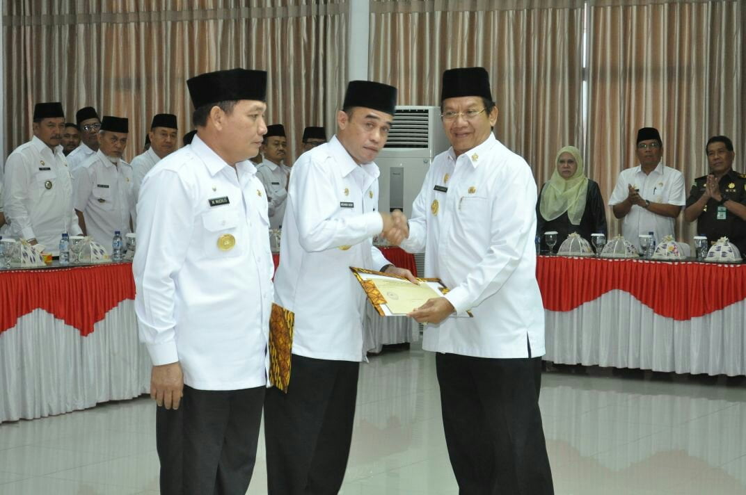 PJs. Bupati Parigi Moutong, Drs. Muh. Nadir, MSi saat menerima SK sebagai Penjabat Sementara yang ditetapkan Mendagri, diserahkan Gubernur Sulteng. (foto:nila)
