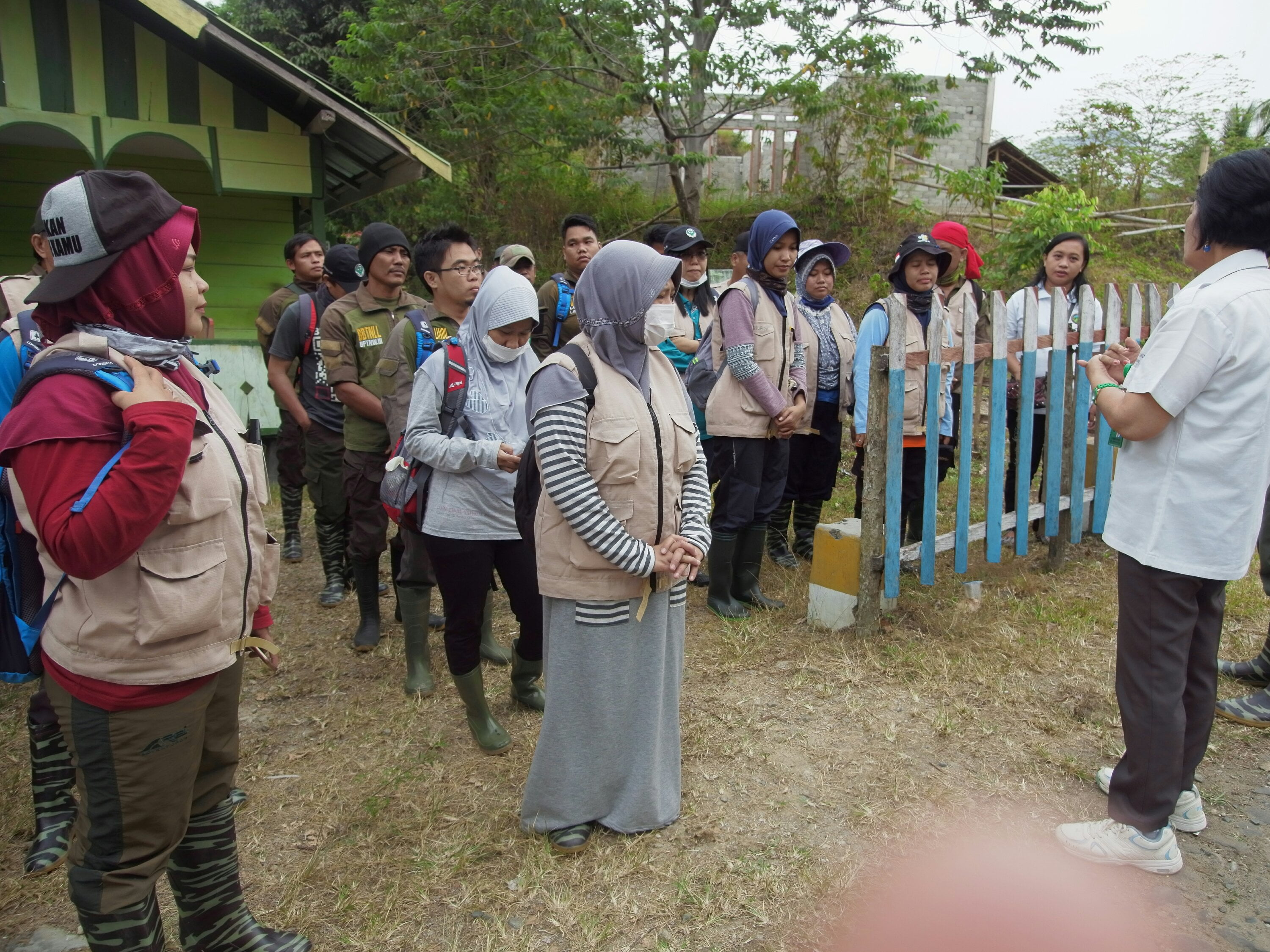 Ir. Periskila Sampeliling, MSi,  mewakili Kepala Balai Besar TNLL saat memberikan pengarahan kepada seluruh tim sebelum turun ke lokasi yang menjadi fokus schistosoma yang ada di emoat desa di Lore Barat. (foto:nila)