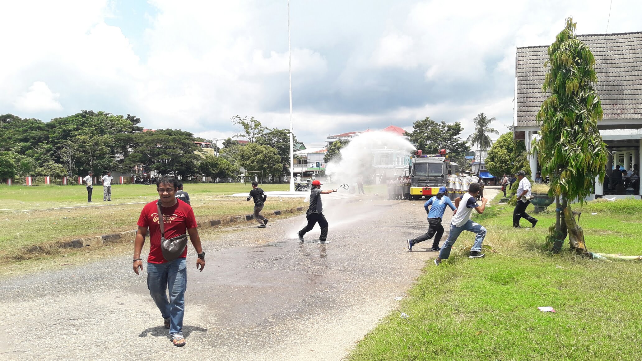 Bentrokan Massa aksi saat simulasi sistem pengamanan Pemilu 2019 di Alun Alun kota Raha