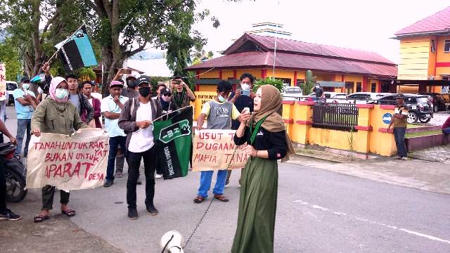 “Ungkap dan Tangkap mafia tanah di Desa Sandana “ Timpal Massa Aksi Kompak.