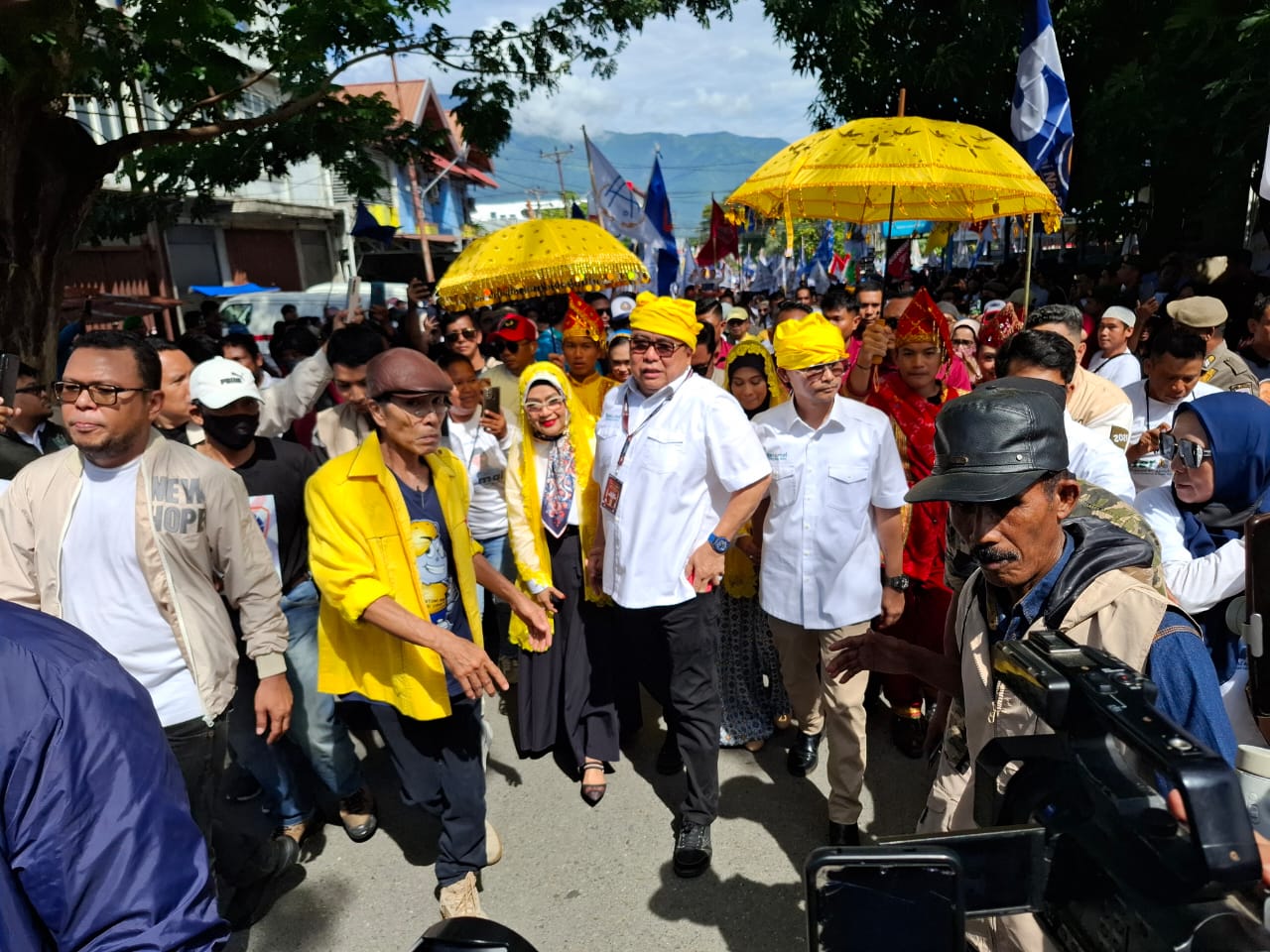 Sementara itu, Longki Djanggola yang melepas Ahmad Ali dan Abdul Karim Aljufri dari Souraja menuju KPU Sulteng mengajak masyarakat adat agar memilih pemimpin yang menghormati adat istiadat daerah.
