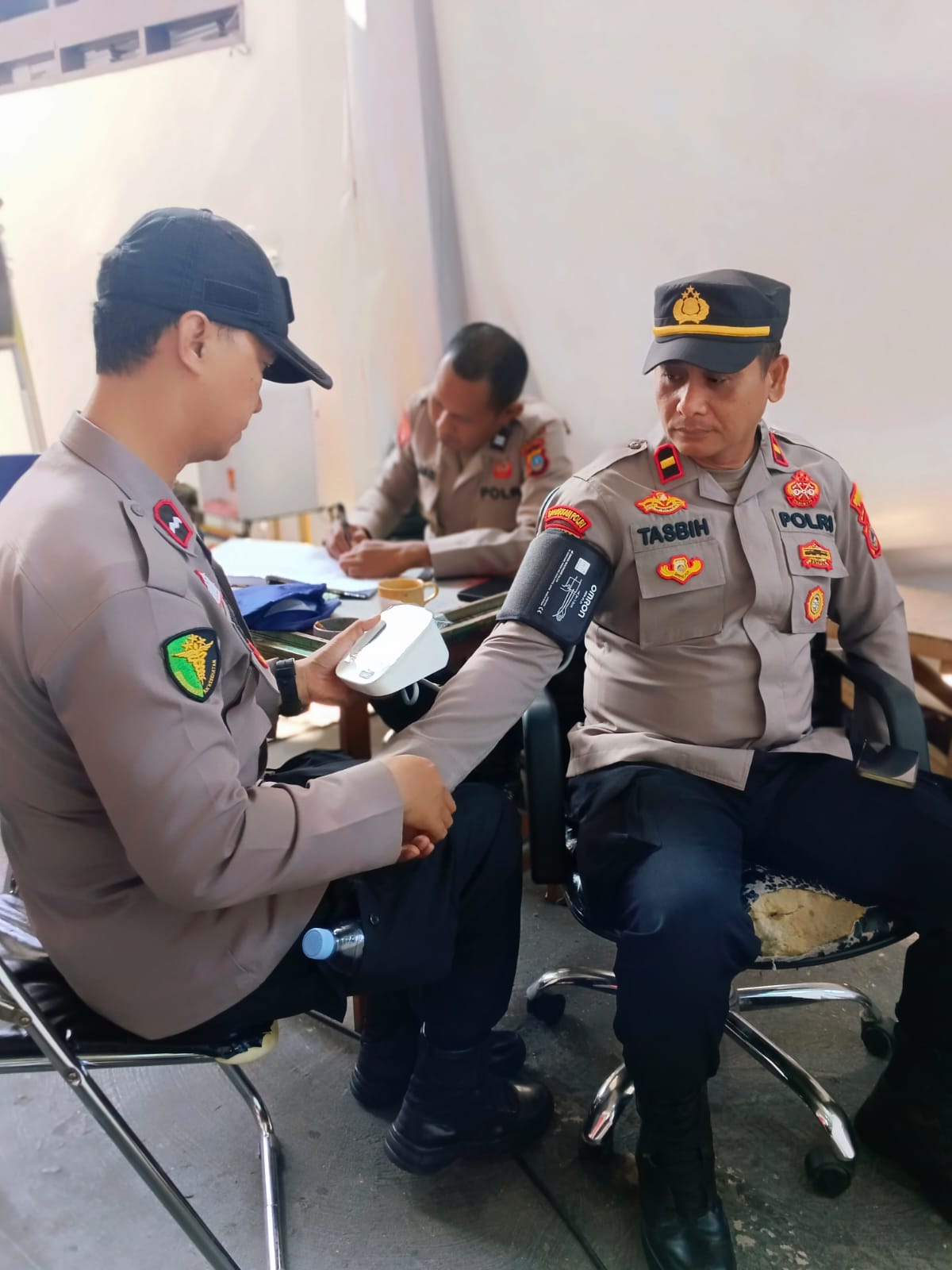 Kegiatan pengecekan kesehatan yang berlangsung pada hari Kamis, (05/09/2024) dini hari. Tim kesehatan yang tergabung dalam Satgas Banops melakukan pemeriksaan secara menyeluruh terhadap kondisi personel, meliputi tekanan darah, kadar gula darah, serta pemeriksaan umum lainnya.